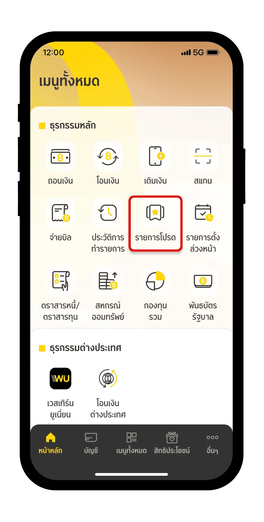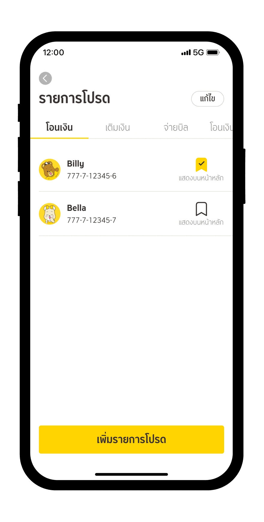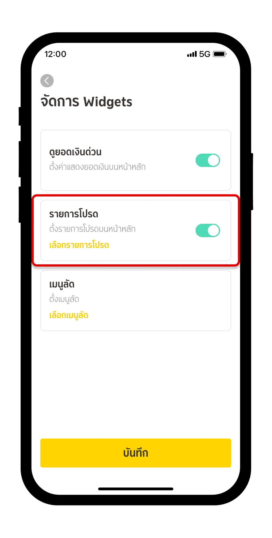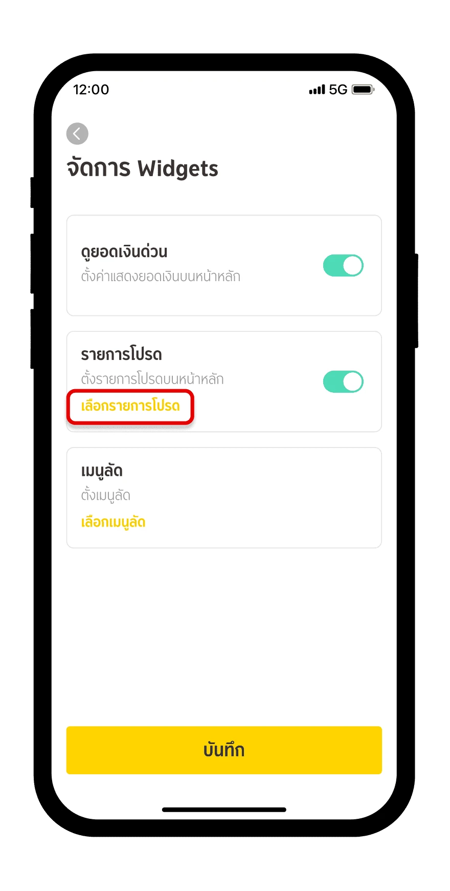 กดไอคอน “แสดงบนหน้าหลัก” ของรายการโปรดที่ต้องการ