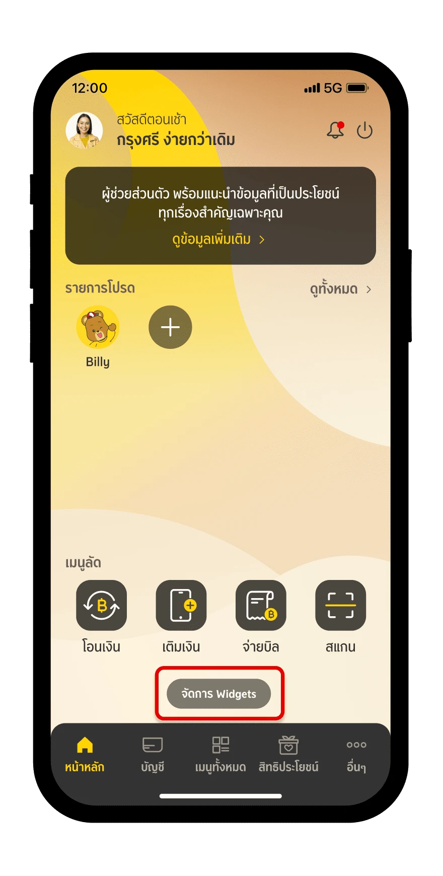เลือก “จัดการ Widgets” จากหน้าหลัก