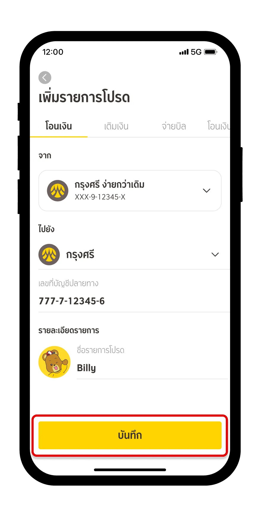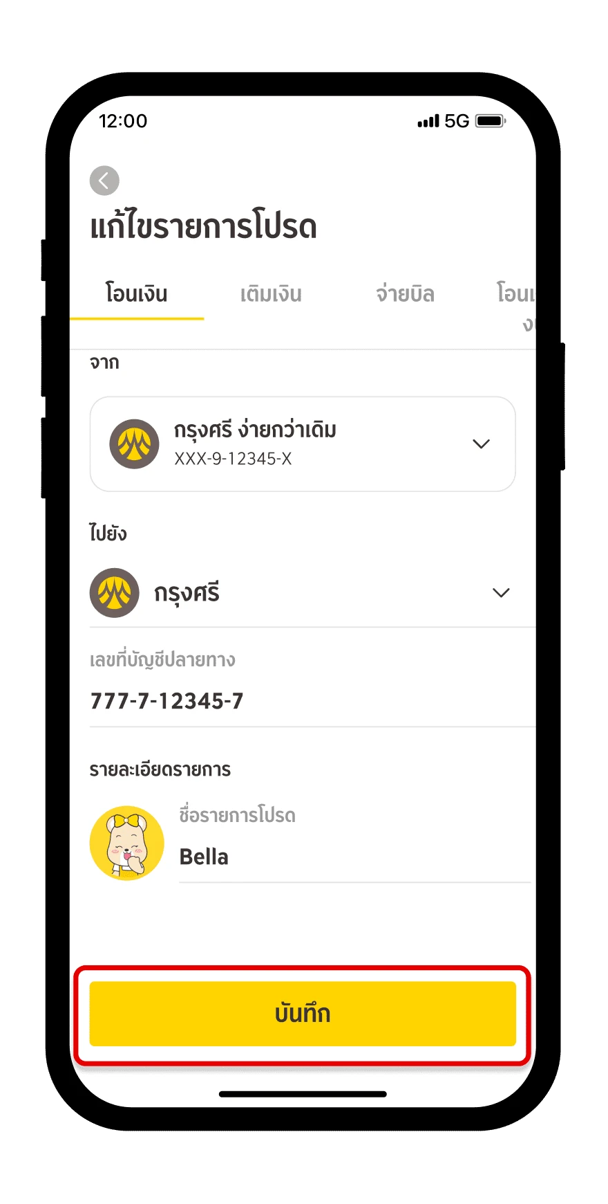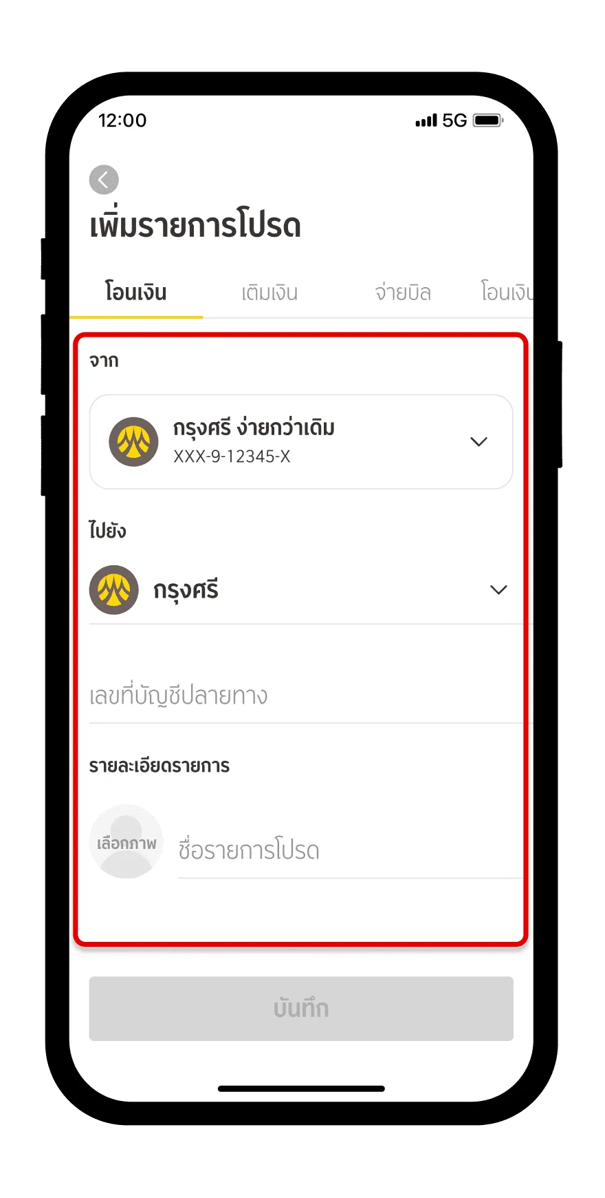 เลือกบัญชีต้นทาง และกรอกรายละเอียดบัญชีปลายทางที่ต้องการแก้ไข และกด “บันทึก”