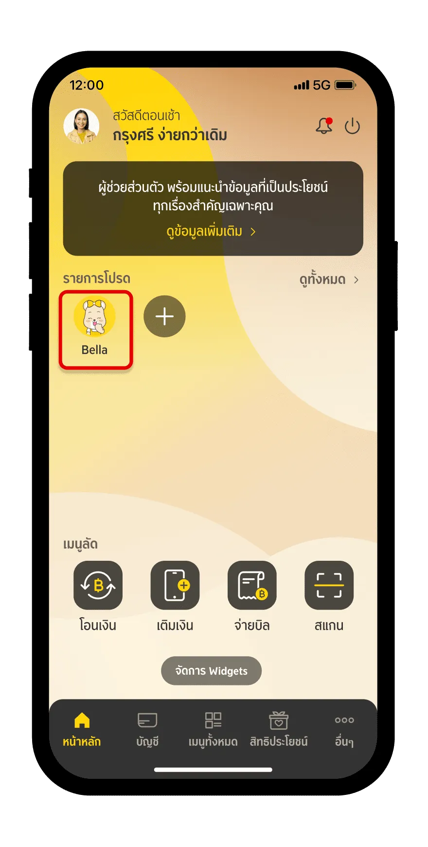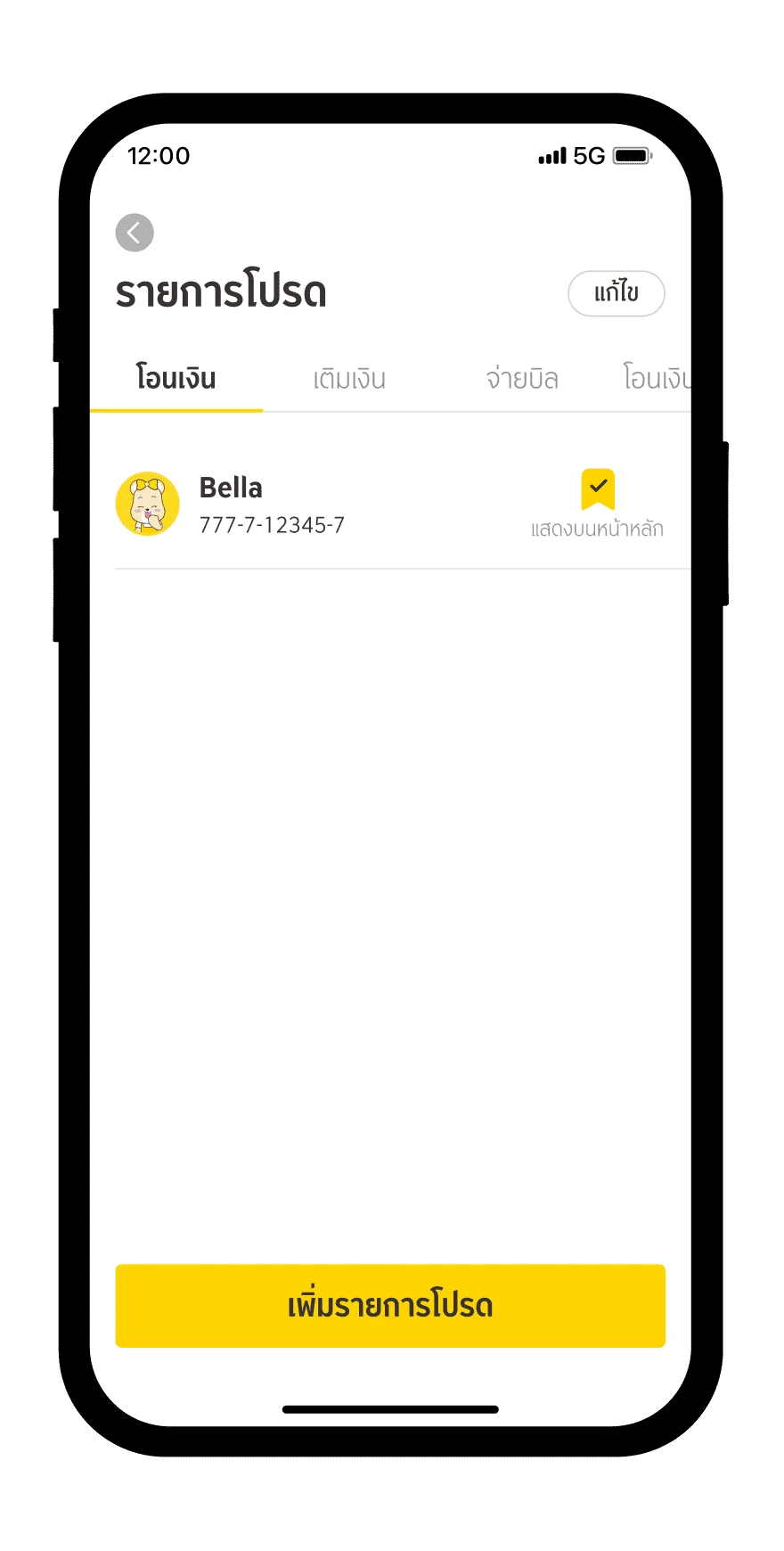 หน้าหลักจะแสดงรายการโปรดที่แก้ไข