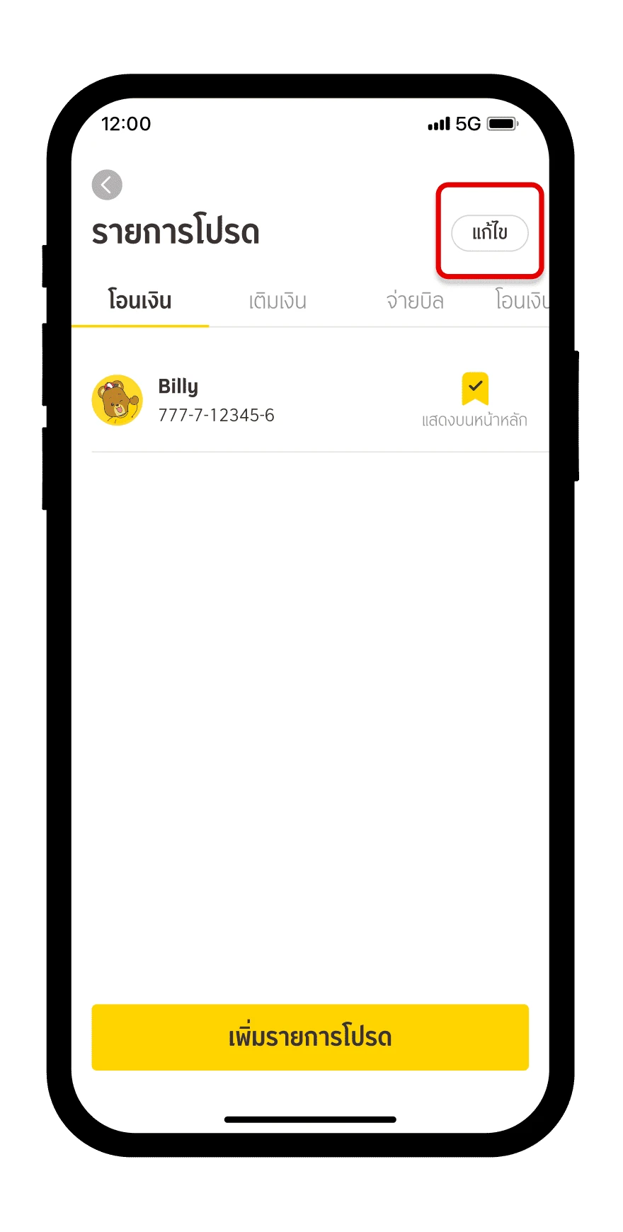 ระบบจะแสดงรายการโปรดที่แก้ไข