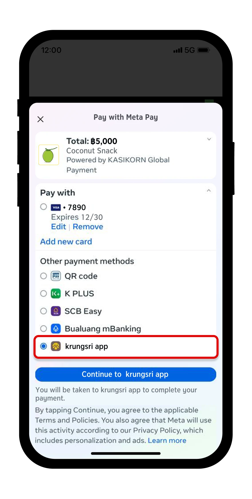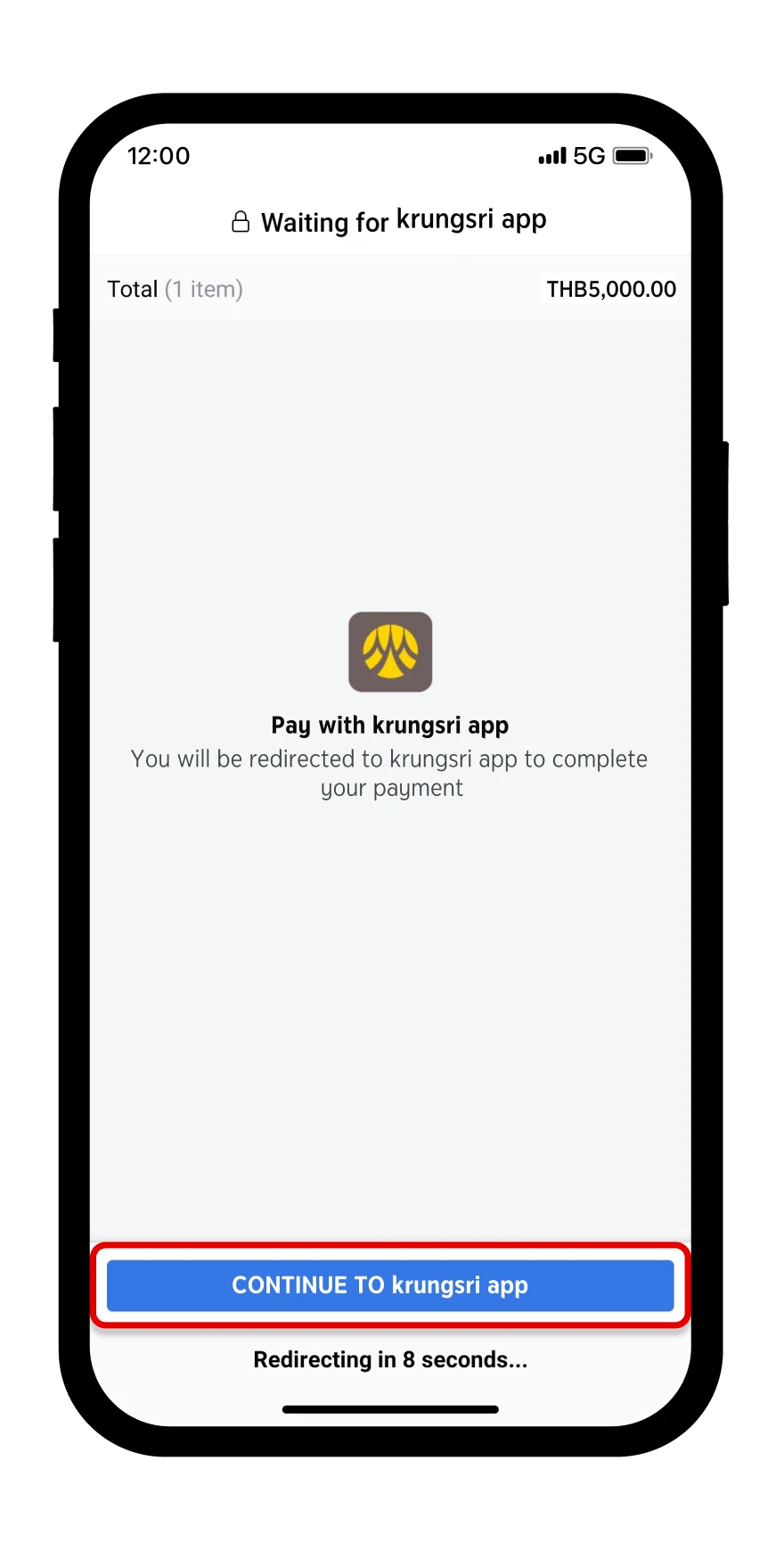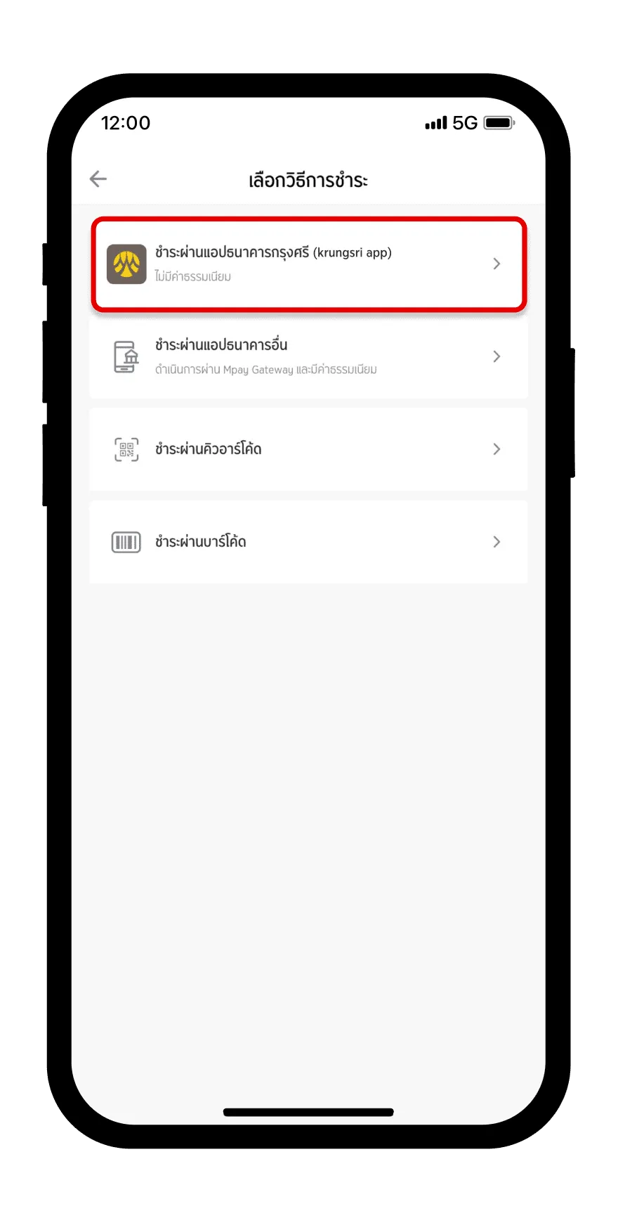 • กรณีต้องการชำระเงินด้วยบัญชีออมทรัพย์ของท่านผ่าน krungsri app กรุณาเลือก “ชำระผ่านบัญชี”และดำเนินการต่อตามขั้นตอนบน krungsri app ได้เลย​