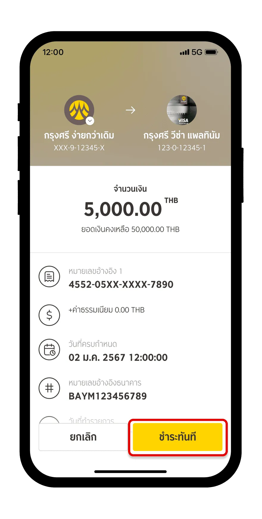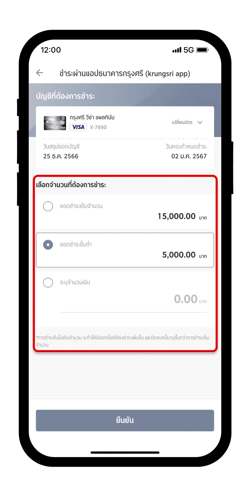 6. ระบุจำนวนเงินที่ต้องการชำระ แล้วกด ‘ถัดไป’​