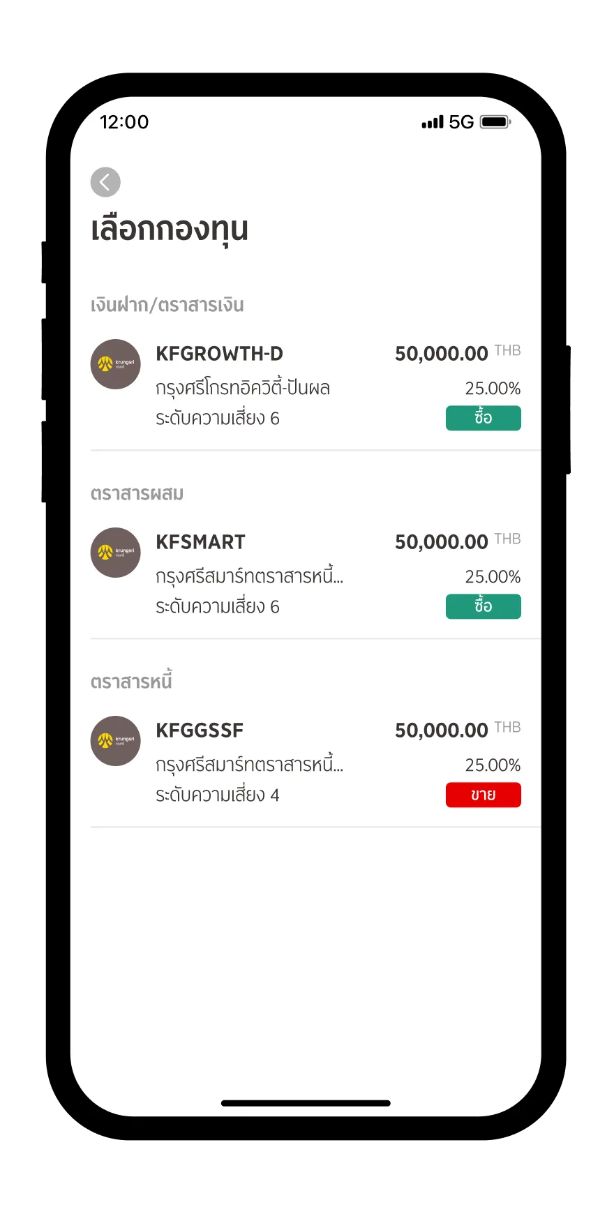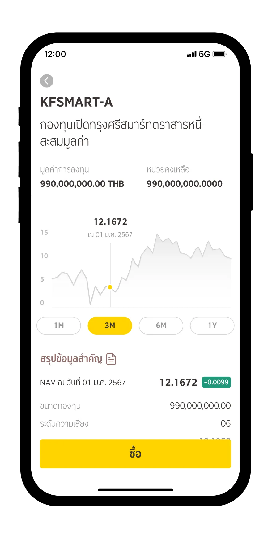 สามารถดูข้อมูลกราฟกองทุน และทำรายการซื้อกองทุนได้