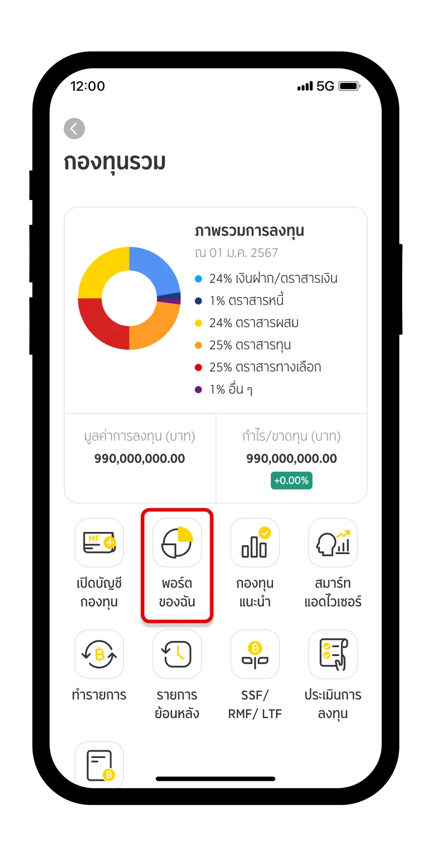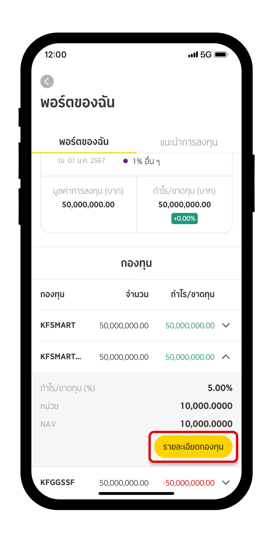 เข้าไปที่หน้ากองทุนแล้วเลือก “พอร์ตของฉัน” หรือ “My Portfolio”