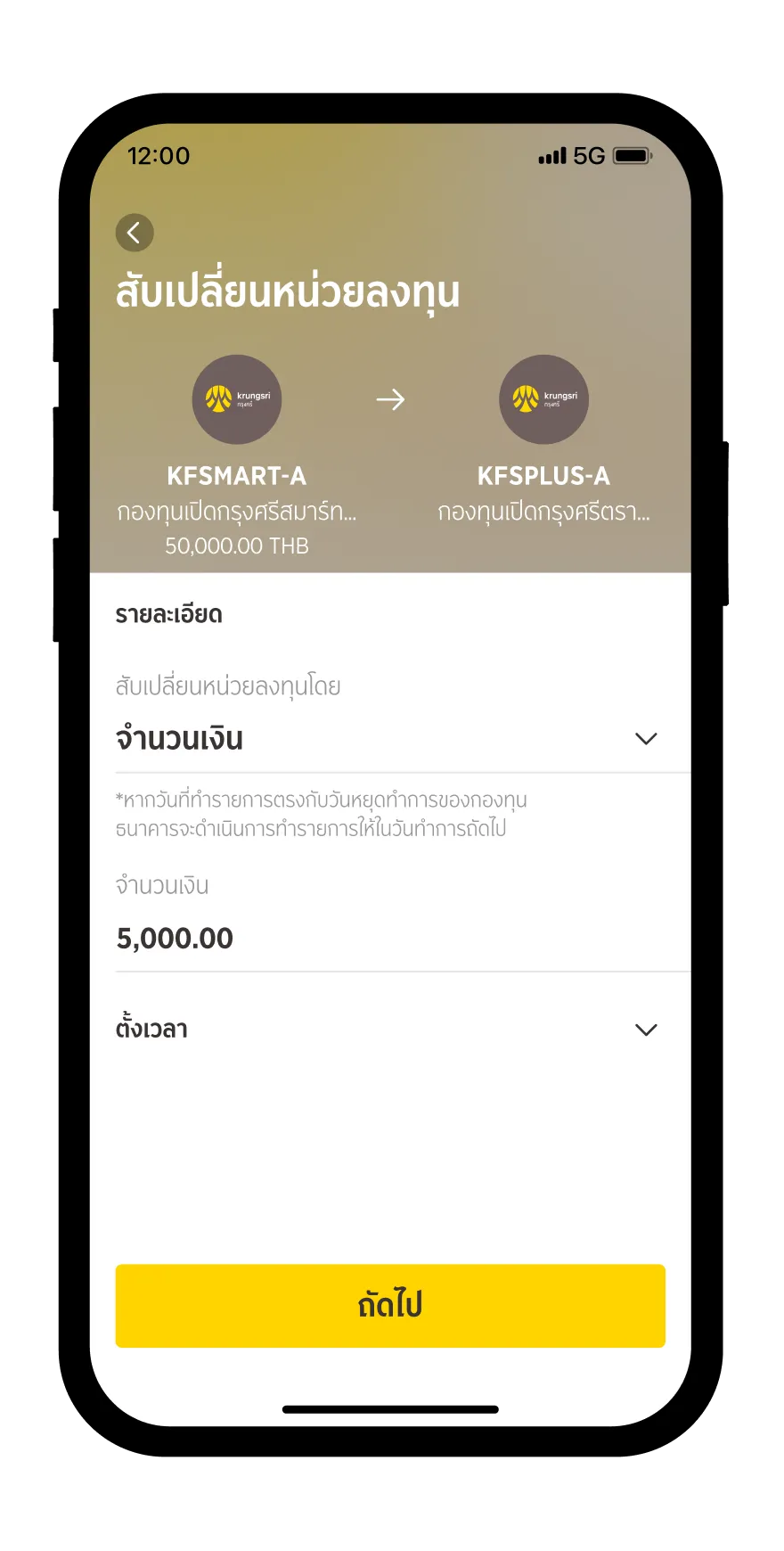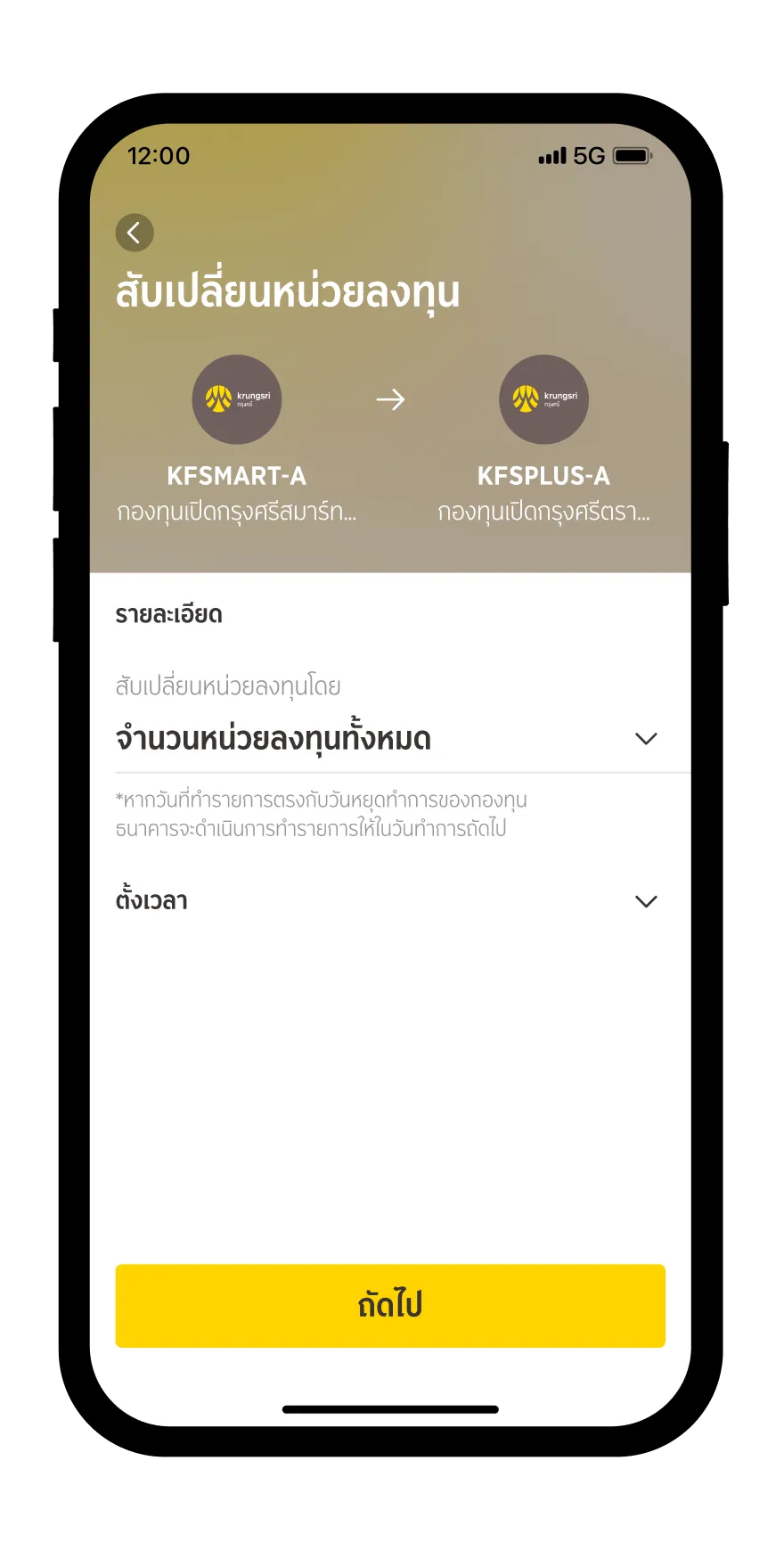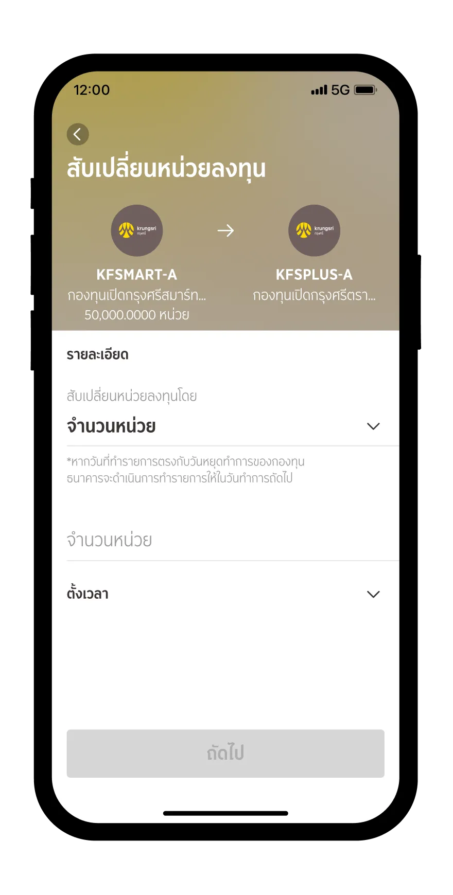 เลือกกองทุนที่ต้องการสับเปลี่ยนเข้า เลือกประเภทที่ต้องการสับเปลี่ยน สามารถเลือกได้ 3 แบบ คือ