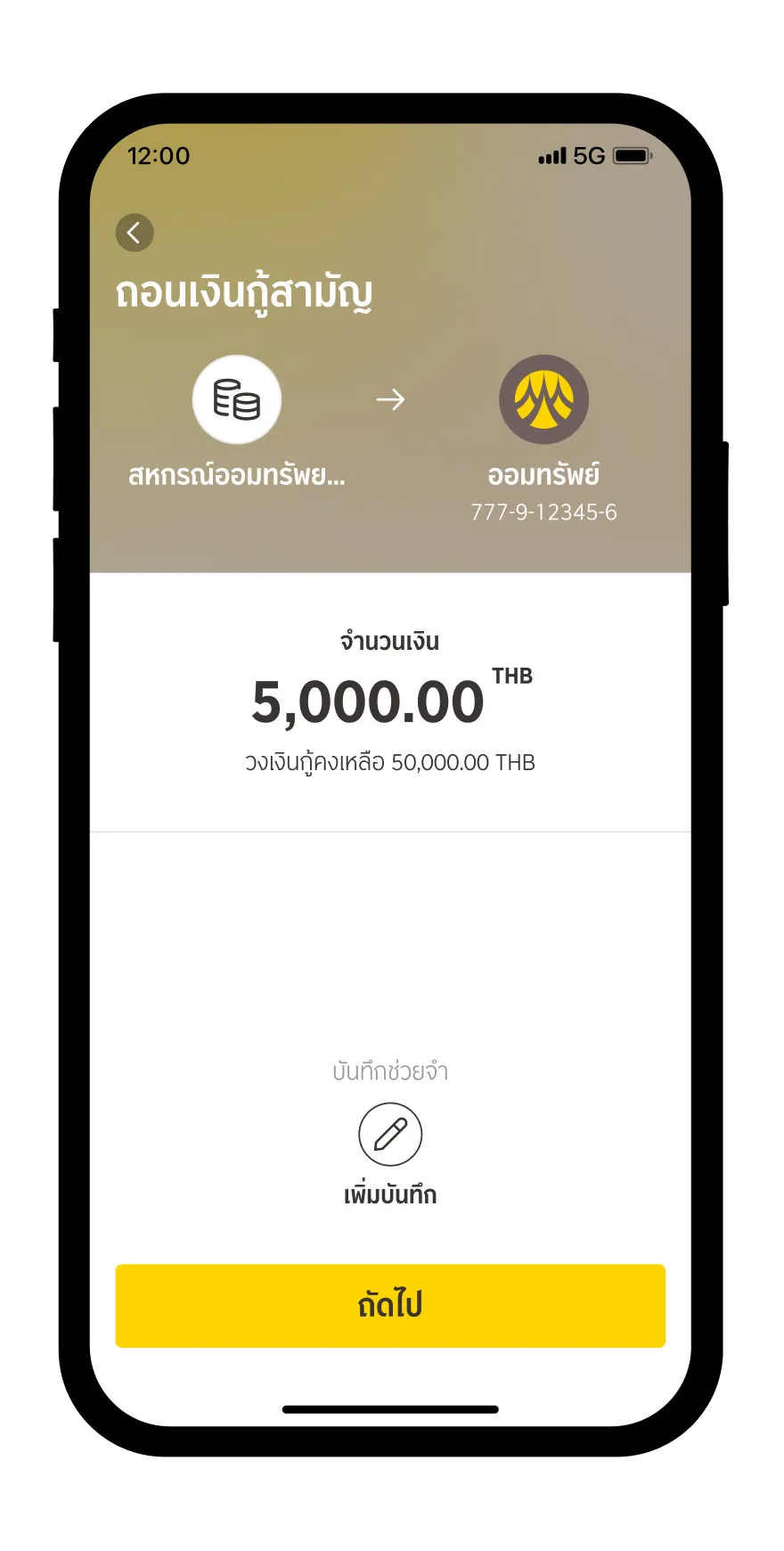 บริการถอนเงินฝากจากบัญชีเงินฝากของสมาชิกที่มีอยู่กับธนาคาร เพื่อนำเข้าบัญชีเงินกู้ของสมาชิกที่มีอยู่กับสหกรณ์