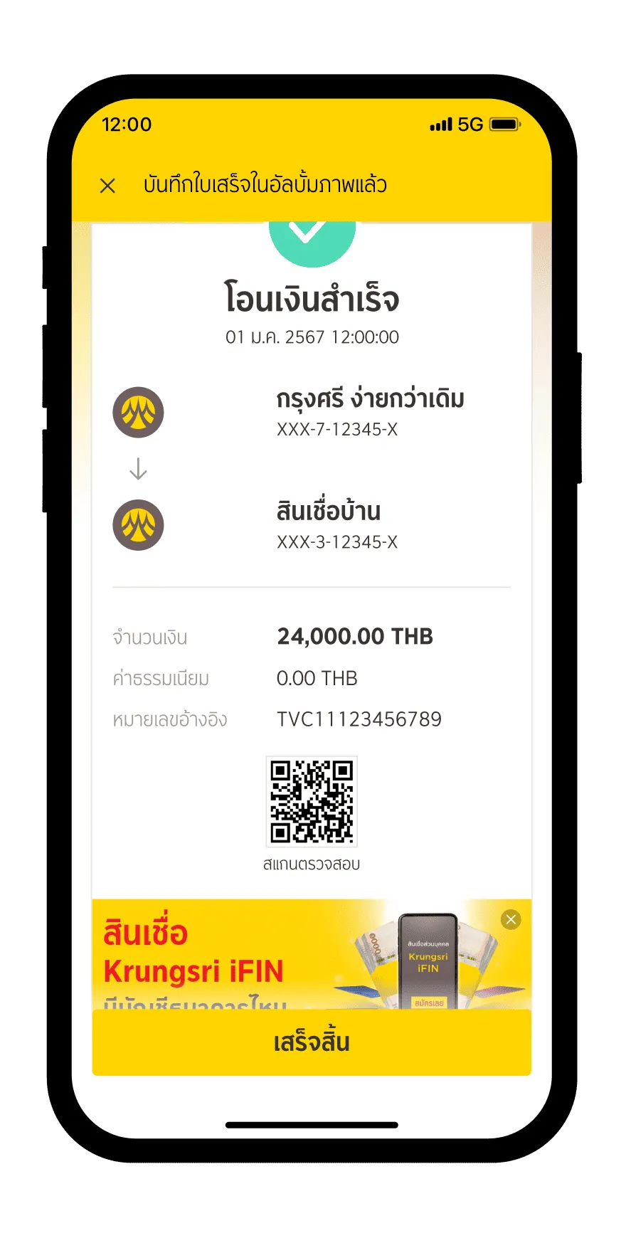 เลือก "สินเชื่อกรุงศรีโฮมฟอร์แคช"