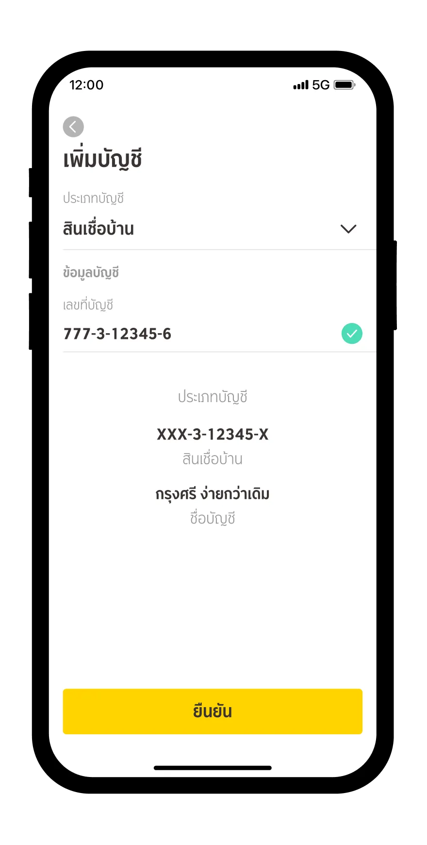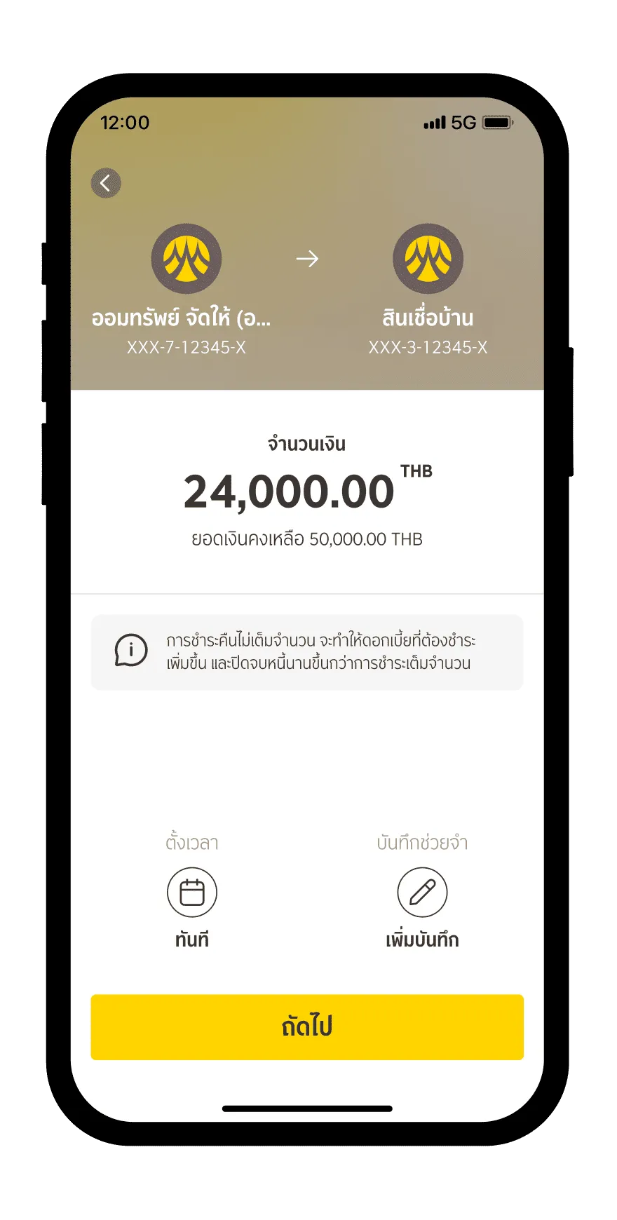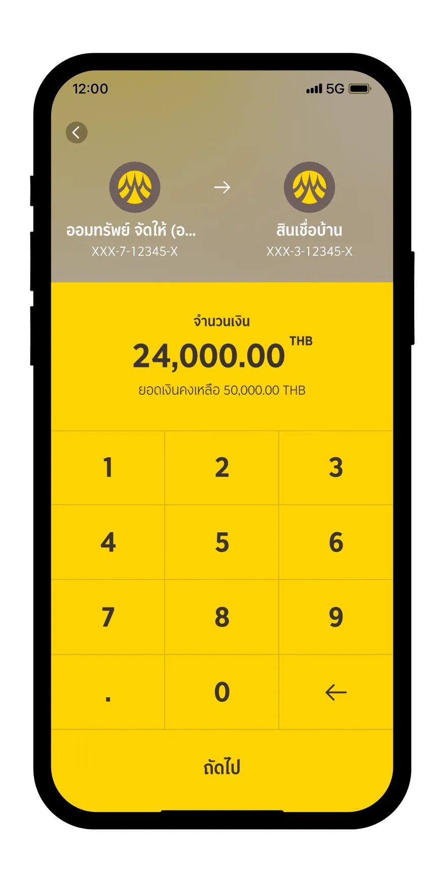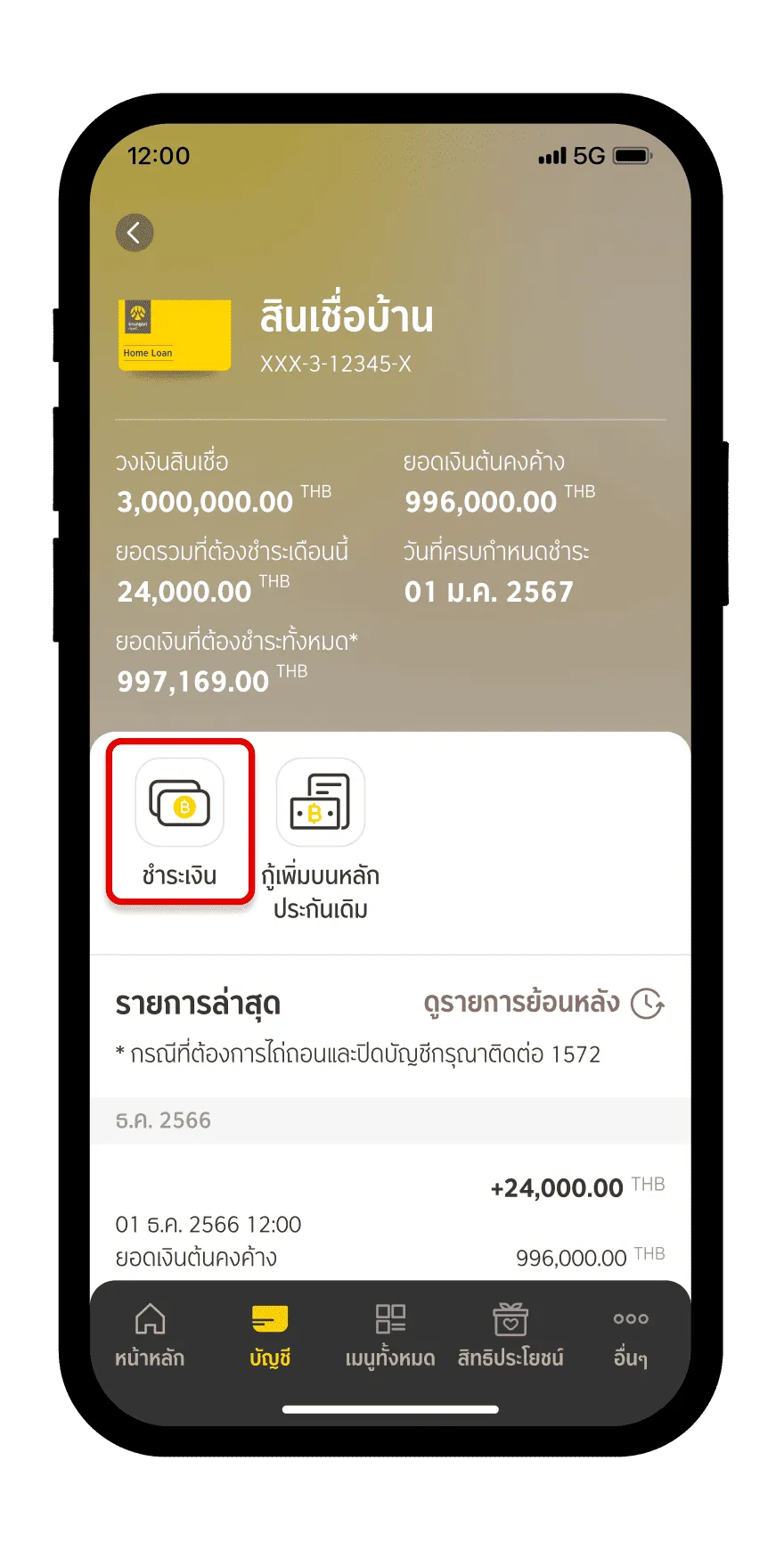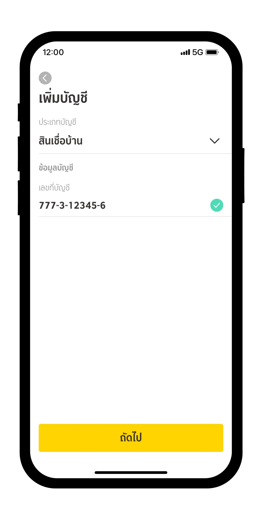 ใส่เลขที่บัญชีสินเชื่อบ้าน กดถัดไป