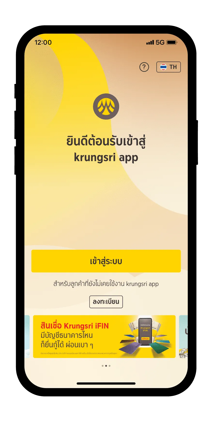 ดาวน์โหลดและเปิด krungsri app เลือกแบนเนอร์ "สินเชื่อ Krungsri iFIN"