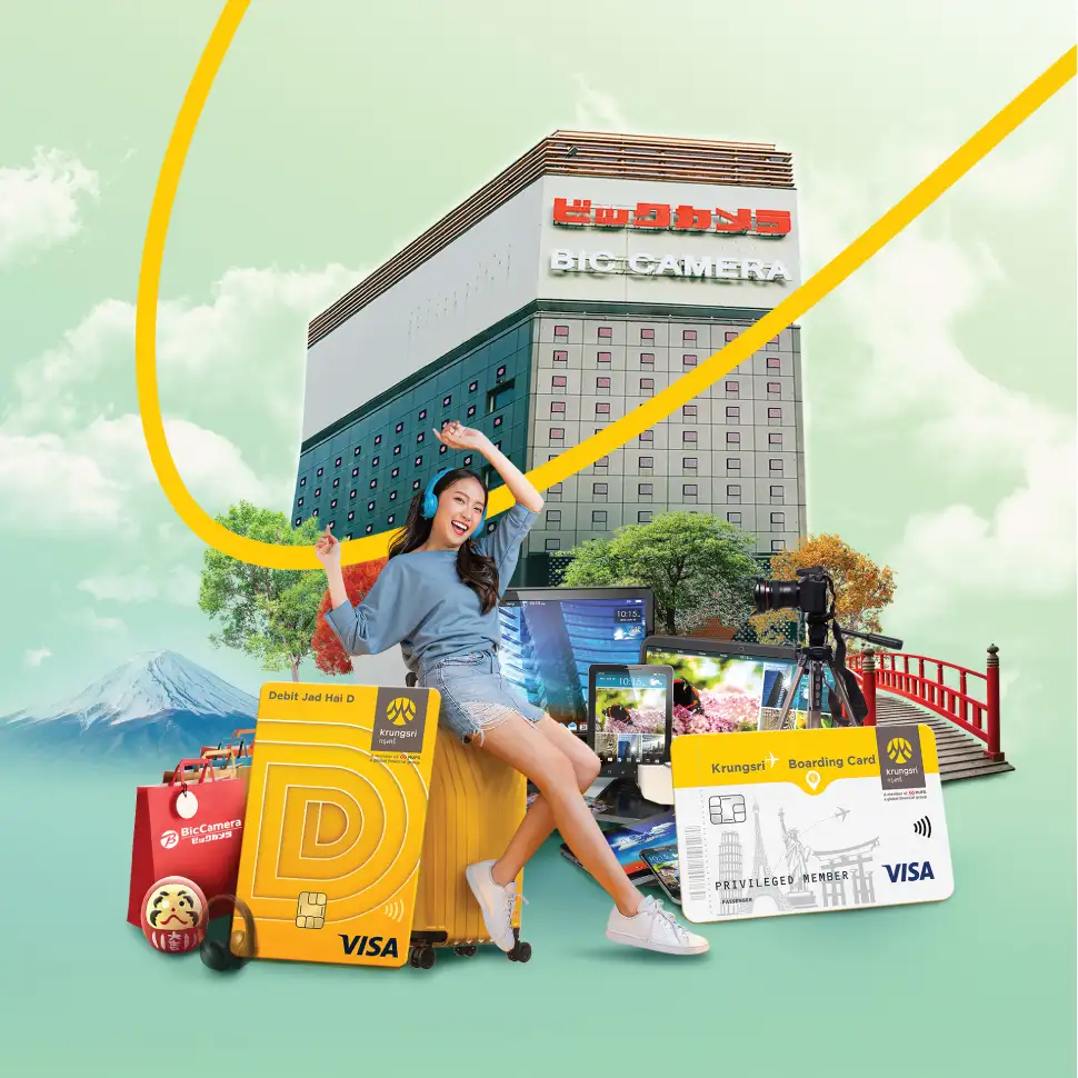 • ข้อกำหนดและเงื่อนไขการใช้บัตรกรุงศรี เดบิต และ Krungsri Boarding Card เป็นไปตามที่ธนาคารกำหนด