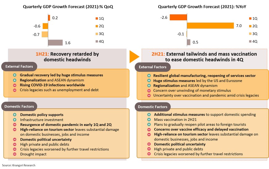 We downgraded 2021F foreign tourist arrivals and private consumption but raised export growth projection; K-shape recovery becomes more visible.