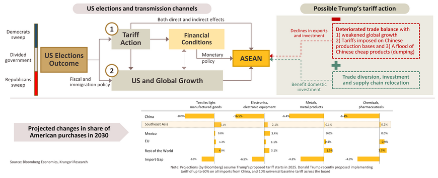 The key risk to regional exports and growth is a potential rise in trade tensions which relates to the US election results, scheduled in November 2024. Generally, the US election outcome will affect ASEAN growth through tariff actions and US economic performance, driven mostly by fiscal policies.