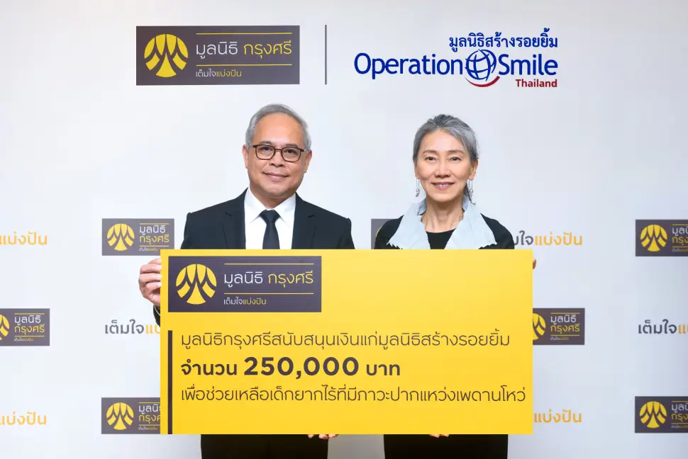 Bangkok (4 December 2025) - Krungsri Foundation, represented by Mr. Pairote Cheunkrut, Chief Strategy Officer of Bank of Ayudhya Public Company Limited, donated 250,000 baht to Operation Smile Thailand to support the ongoing surgical program for underprivileged children with cleft lip and palate at Chonburi Hospital in Chonburi. Representing Operation Smile Thailand, the organization’s chairperson, Ms. Yupares Nimkarn, DDS, received the donation. Over the past five years, Krungsri Foundation has helped 63 children with cleft lip and palate receive timely and appropriate treatment.