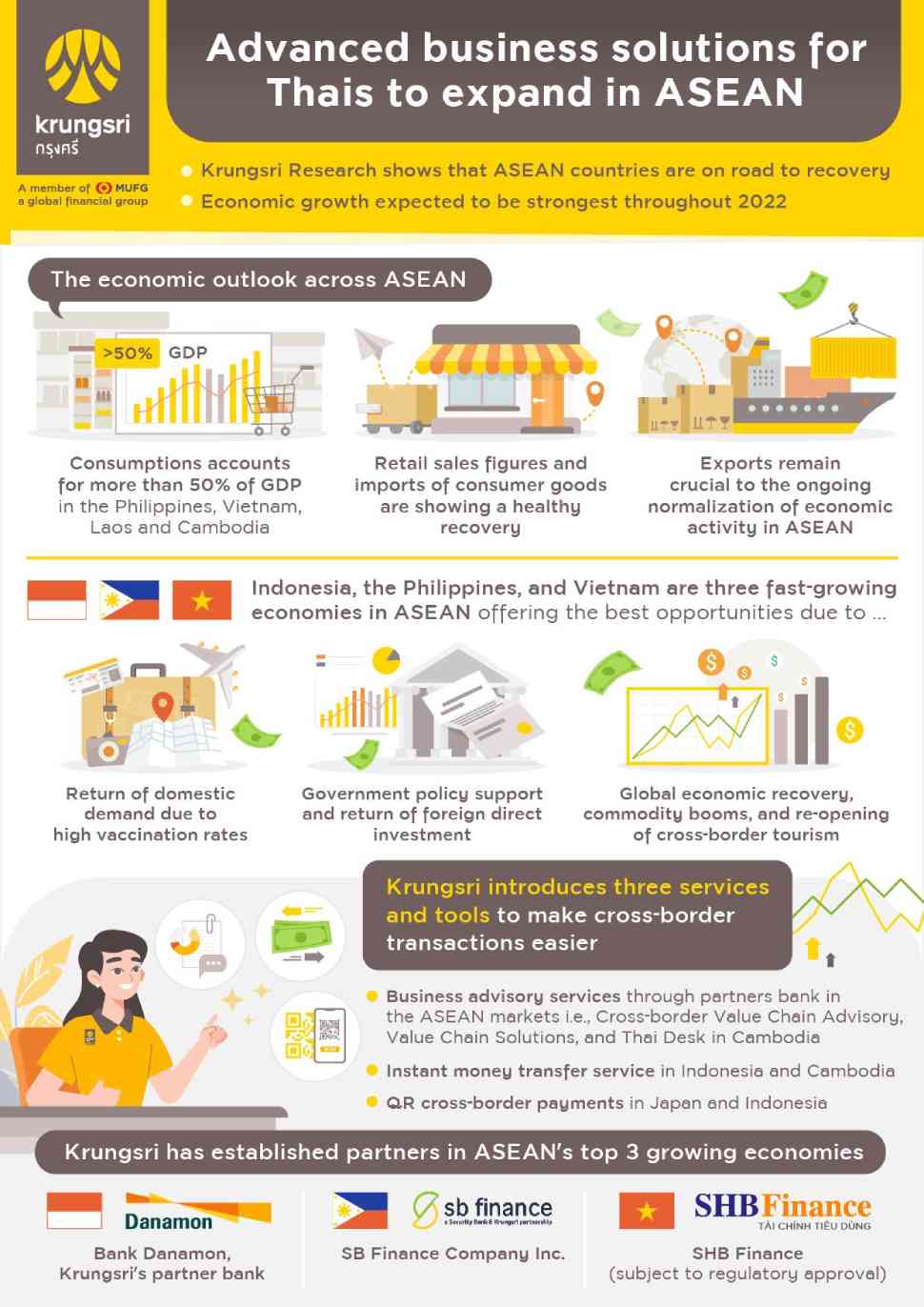 In addition to these three key services that the Bank is ready to assist customers to expand beyond Thailand, Krungsri has partnered with banks in ASEAN to enhance its ASEAN connectivity which is one of its key focuses for 2022.