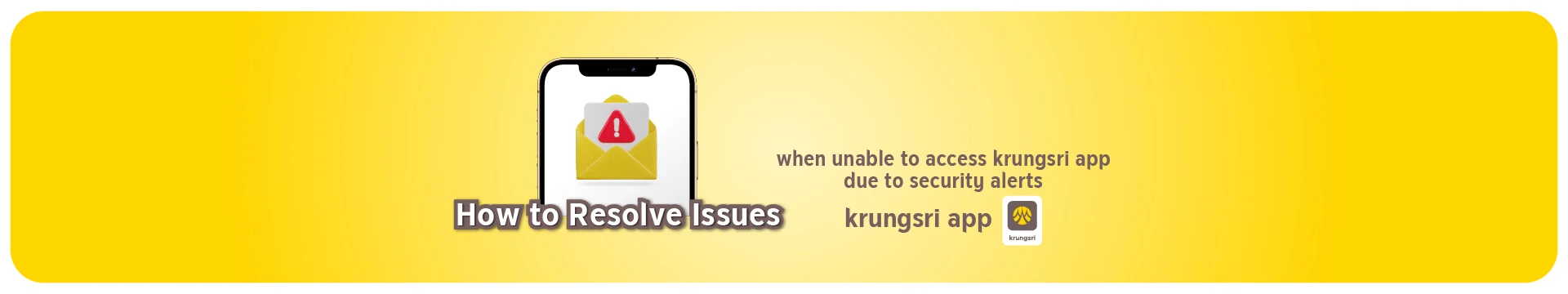 If you're unable to access krungsri app due to a security alert, it may be because the app has detected a device or application that appears to have been modified or is deemed suspicious. To maintain security, krungsri app will block access under such circumstances. To resolve this issue, please follow these steps: