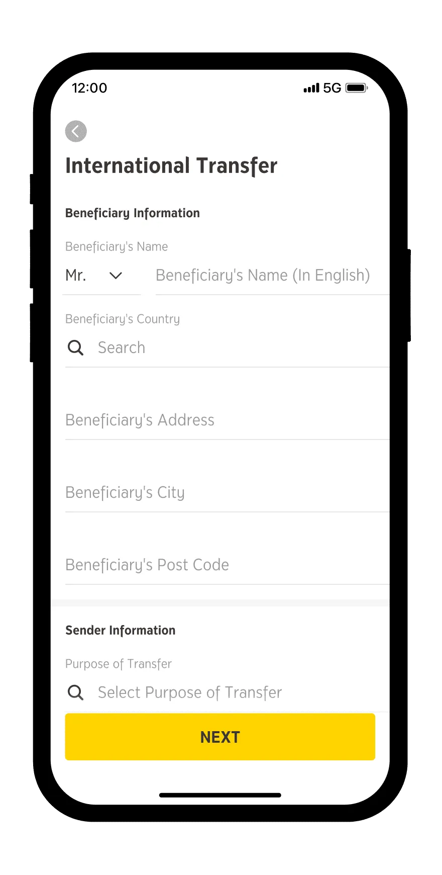 Information used for making international transfer | • Beneficiary’s mobile number registered for PayNow service with DBS, OCBC, UOB banks in Singapore |