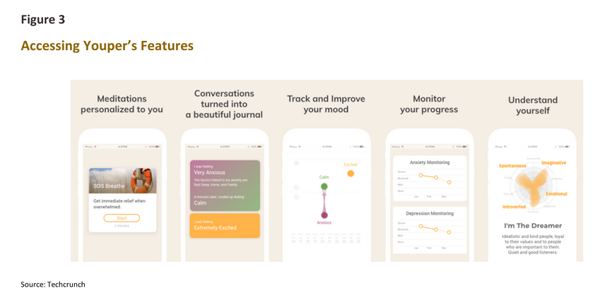 Users are able to access AI services delivered through chatbots at all times of the day and night, regardless of where they may be. Individuals with mental health concerns but who are in areas where they have no immediate access to mental health professionals may therefore still receive a preliminary diagnosis and a suggested treatment plan at times and in locations that are convenient to them. In addition to improving access to mental health care,21/ using AI also means that an individual’s dependency on direct contact with healthcare professionals will be lessened, thereby reducing pressure on budgets arising from the delivery of what can be costly services. For example, in 2022, Headspace partnered with a leading global corporation to analyze the cost implications of using the Headspace app to help with employee health and welfare, finding that this helped to cut spending related to employees’ mental healthcare by 15%.22/