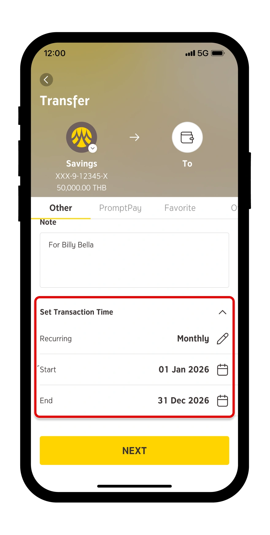 クルンシィのつみたて定期預金なら、高い金利と非課税のメリットを受けながら、将来の目標に向けて着実に資産を貯められます。 毎月同じ金額を自動でつみたてられるため、手間なく続けやすいのも特長です。500バーツから始められるので、自分のペースで気軽に取り組める貯蓄方法としておすすめです。