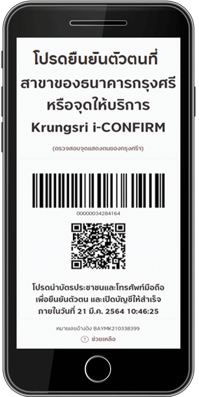 ลูกค้าจะได้รับ QR Code เพื่อนำไปแสกนที่จุดบริการ Krungsri i-CONFIRM
