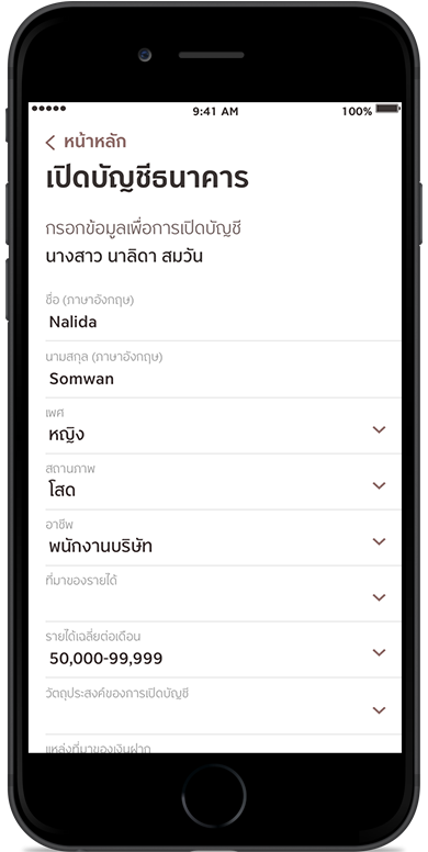 กรอกข้อมูลเพื่อเปิดบัญชี