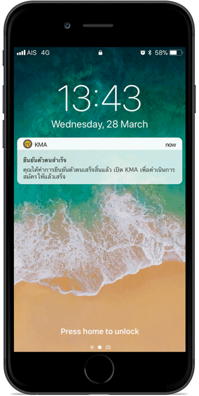 หน้าจอแสดงยืนยันตัวตนสำเร็จ กดปุ่ม "ตกลง" จบขั้นตอนการยืนยันตัวตน