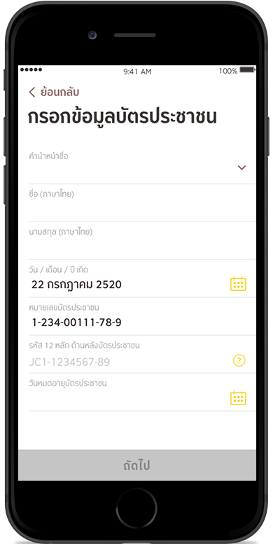 กรอกข้อมูลตามบัตรประชาชน