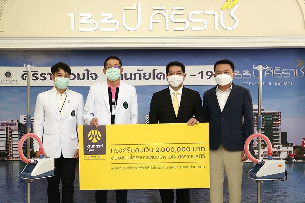 กรุงศรีมอบ 2 ล้านบาท ให้ศิริราชมูลนิธิ จัดซื้อเครื่องออกซิเจนไฮโฟลว์ส่งต่อโรงพยาบาลขาดแคลน