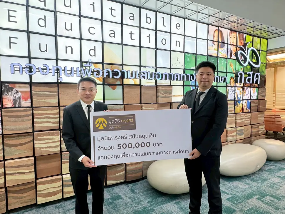กรุงเทพฯ (4 กุมภาพันธ์ 2569) – มูลนิธิกรุงศรี โดยนายพูนสิทธิ์ ว่องธวัชชัย (ซ้าย) ผู้ช่วยเลขานุการมูลนิธิกรุงศรี มอบเงินสนับสนุนจำนวน 500,000 บาท แก่ ดร.ไกรยส ภัทราวาท (ขวา) ผู้จัดการกองทุนเพื่อความเสมอภาคทางการศึกษา (กสศ.) เพื่อขับเคลื่อนโครงการสนับสนุนทุนการศึกษาสำหรับเด็กและเยาวชนนอกระบบ ผ่านโครงการโรงเรียนเคลื่อนที่ (Mobile School) ซึ่งมีรูปแบบการศึกษาที่มีความยืดหยุ่นสูง โดยมุ่งหวังแก้ปัญหาและสร้างโอกาสให้เด็กและเยาวชนที่หลุดจากระบบการศึกษาให้กลับเข้าสู่เส้นทางการเรียนรู้ตามความเหมาะสมและศักยภาพของแต่ละบุคคล