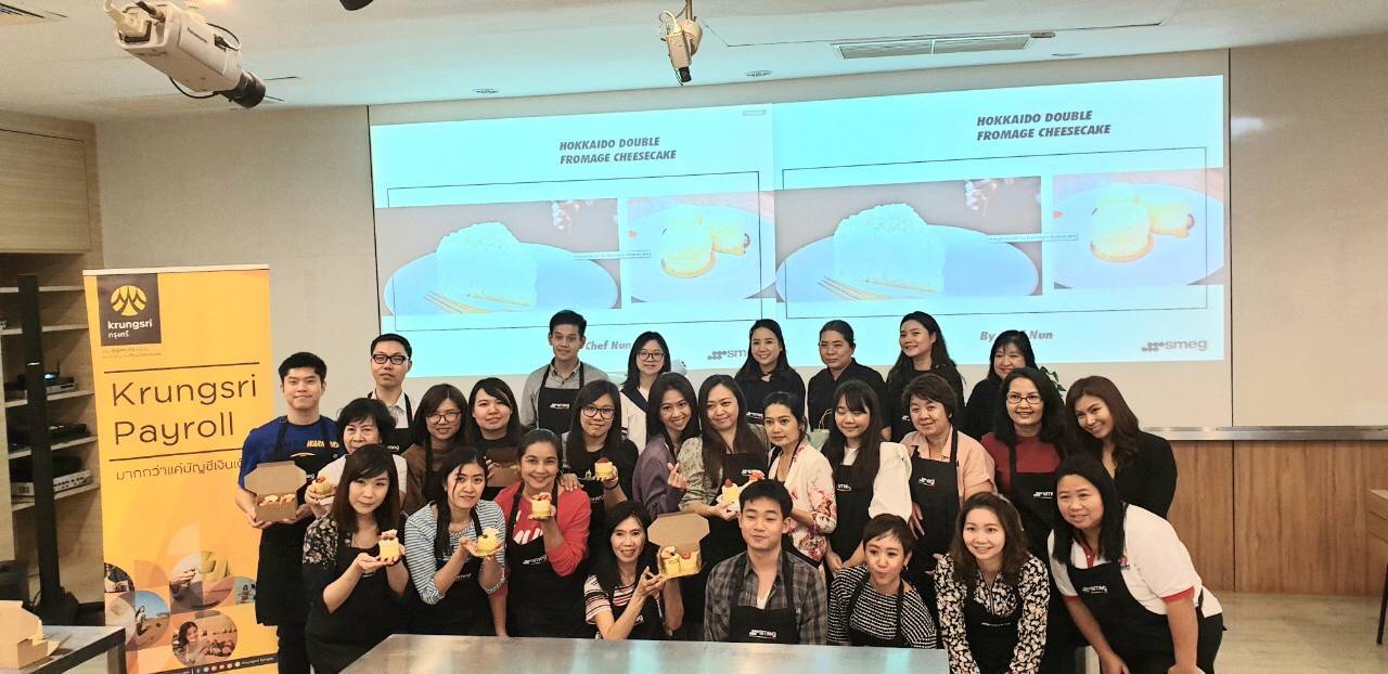 Krungsri Payroll ร่วมกับ SMEG จัดกิจกรรม Workshop “ทำขนม Double Fromage Cheese Cake ด้วยตัวคุณเอง” ให้กับลูกค้าคนพิเศษ เมื่อวันเสาร์ที่ 14 ธันวาคม 2562 ณ SMEG Iconic Space ซึ่งได้เชิญ “เชฟนุ่น ภาวิณี บัวมัน” เชฟมากประสบการณ์ที่มีความเชี่ยวชาญในการทำขนมเค้กสไตล์ญี่ปุ่น การันตีด้วยใบรับรอง Basic Patisserie จาก Le Cordon Bleu Pastry Dusit และ เป็นหัวหน้าเชฟที่ GRAM Pancake Thailand มาเป็นผู้ดำเนินการสอนในครั้งนี้ ภายในงานลูกค้าได้ลงมือทำ Double Fromage Cheese Cake ด้วยตนเอง โดยการสอนแบบเจาะลึกพร้อมเคล็ดลับสุดพิเศษ และเมื่อทำเสร็จแล้วยังได้นำผลงานกลับบ้านไปให้คนในครอบครัวได้ลิ้มรสอีกด้วย