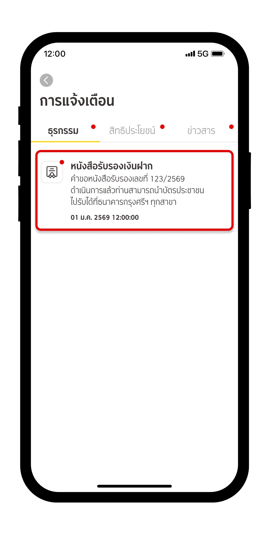 คุณสามารถติดต่อขอรับหนังสือรับรอง ที่ธนาคารกรุงศรีทุกสาขา โดยแสดงบัตรประชาชน และหมายเลขอ้างอิงที่แสดงบนรายการแจ้งเตือนของคุณ