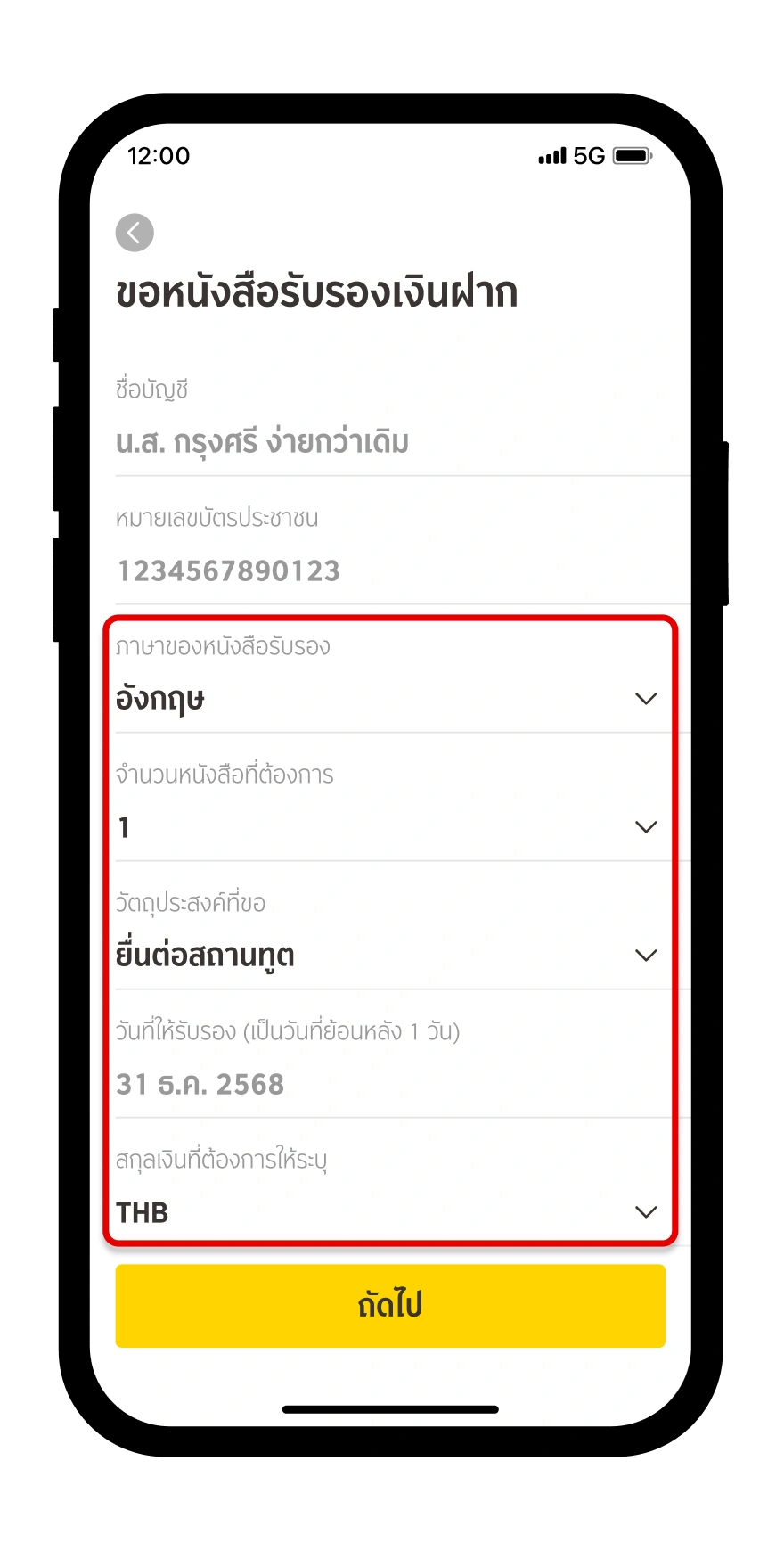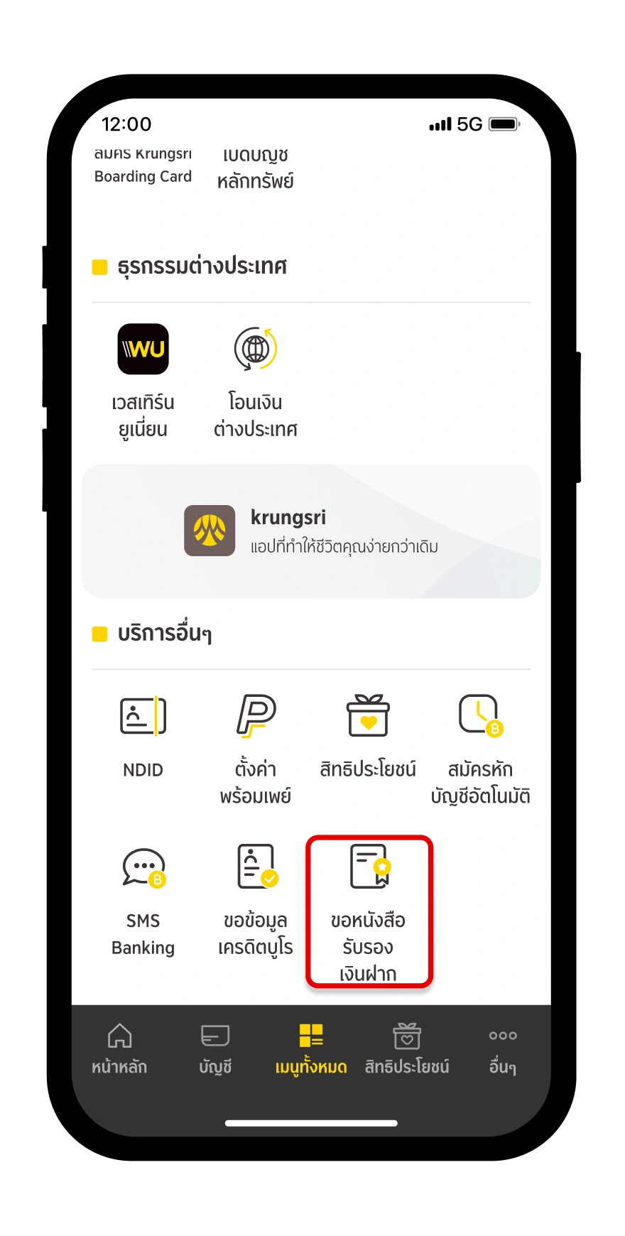 เลือก “ขอหนังสือรับรองเงินฝาก”
