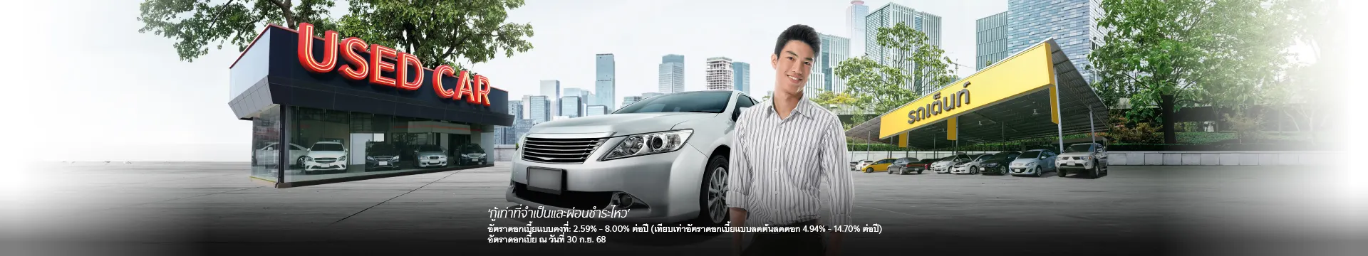 - ผู้ขอสมัคร หรือ ผู้เช่าซื้อรถยนต์ จะต้องมีอายุ 20-65 ปี ณ วันทำสัญญา