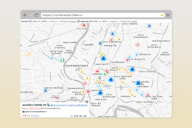 เป็นแพลตฟอร์มเว็บไซต์ที่พัฒนาโดย 5Lab บริษัทเอกชน ที่นำข้อมูลจุดที่มีผู้ติดเชื้อและข่าวสารทั้งหมดที่เกิดขึ้นบนโลกออนไลน์ มาระบุพิกัดบนแผนที่ให้เห็นกันแบบชัดเจน มีการกรองข้อมูลของ Fake News อัปเดตจุดเสี่ยงที่ผ่านการทำความสะอาดแล้ว รวมถึงแสดงสถานพยาบาลที่รองรับการตรวจโควิด-19 ด้วย ใครที่มีความจำเป็นต้องออกไปทำธุระ แนะนำให้เช็กก่อนออกเดินทาง