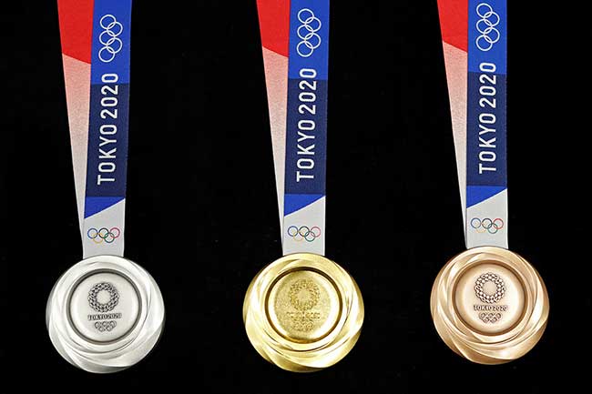 เหรียญรางวัลอันทรงเกียรติอย่างเหรียญทอง เหรียญเงิน และเหรียญทองแดง ที่มอบให้กับนักกีฬา เป็นผลงานการออกแบบโดยจูนิจิ คาวานิชิ เน้นความเรียบง่าย เพิ่มจุดเด่นตรงส่วนโค้งของเหรียญ หากมองจากหลายมุมทำให้เหรียญมีลักษณะ 3 มิติ และมีความแวววาว แต่สิ่งพิเศษกว่านั้นที่ตอกย้ำความใส่ใจสิ่งแวดล้อมของญี่ปุ่น คือเหรียญผลิตจากขยะอิเล็กทรอนิกส์ที่มาจากการบริจาคของชาวญี่ปุ่น เช่น โทรศัพท์มือถือ, คอมพิวเตอร์, แท็ปเล็ต ฯลฯ รวมกว่า 80,000 ตันมีจำนวนทั้งหมดกว่า 5,000 ชิ้น ซึ่งอุปกรณ์อิเล็กทรอนิกส์เหล่านี้มีส่วนประกอบที่เป็นทอง เงิน และทองแดงอยู่แล้ว ดังนั้นกระบวนการรีไซเคิลขยะเป็นเหรียญจึงไม่ใช่เรื่องยากสำหรับประเทศที่เป็นผู้นำด้านนวัตกรรมอย่างญี่ปุ่น ทั้งนี้เหรียญรางวัลรีไซเคิลจะถูกนำไปใช้ในการแข่งขันพาราลิมปิก 2020 ที่จะมีขึ้นหลังจากโอลิมปิกเสร็จสิ้นลง