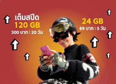 เต็มสปีด 120 GB 300 บาท 20 วัน และ 24 GB 89 บาท 5 วัน
