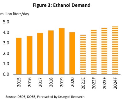 - ปริมาณส่งออกมันเส้น (สัดส่วน 43.0% ของปริมาณส่งออกทั้งหมด) และมันอัดเม็ด (สัดส่วน 0.2%) ขยายตัว 59.3% และ 45.8% YoY ตามลำดับ ตามความต้องการของตลาดจีนที่เพิ่มขึ้นจาก (1) ความต้องการมันเส้นเพื่อผลิตแอลกอฮอล์และเอทานอล เนื่องจากข้าวโพดที่เคยใช้เป็นพืชทดแทนมีราคาสูงขึ้น และ (2) สถานการณ์โรคระบาดในไก่และสุกรเริ่มดีขึ้น ทำ ให้ความต้องการใช้มันสำปะหลังเป็นอาหารสัตว์ปรับเพิ่มขึ้น